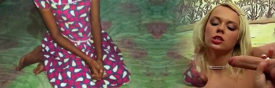 Natural pigtailed black head Timea Bella sucks jizz-shotgun and gets poked in sideways pose