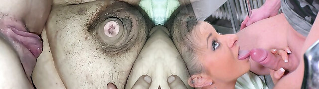 2 hot teen babes in an anal three-way with spunk in mouth