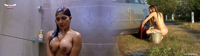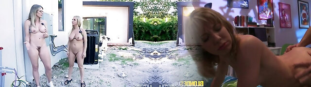 Sextractive blonde hottie Jennifer walks with her friend wearing bikini