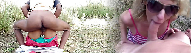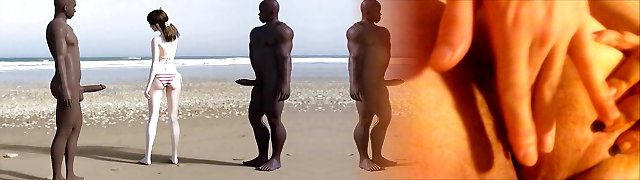 White Nymph Gets Blacked On The Beach By 2 Bbcs
