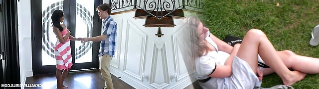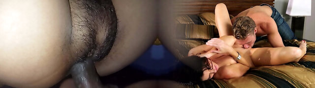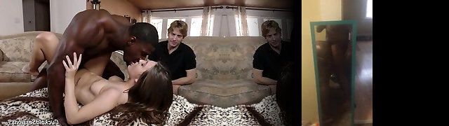 Dark-hued boy makes a shy brunette moan as her lover watches
