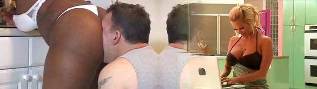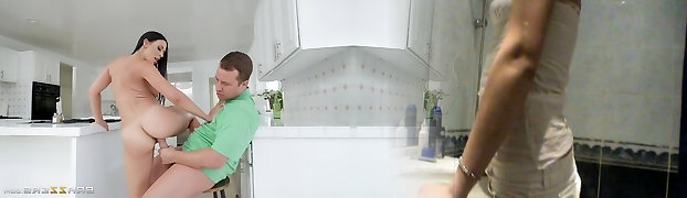Buxom fit babe Rachel Starr doggy fucked in the kitchen