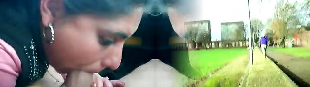 Mature Indian hitchhiker giving a blowjob in the van