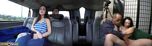 Nice fucking in the back of the taxi between Anna Rose and Bella Pumpkin