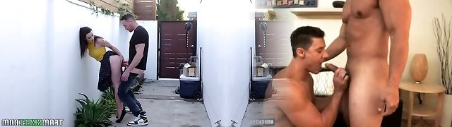 Fuck-a-thon-starved girl Lyra Lockhart gives a blowjob and gets humped outdoor