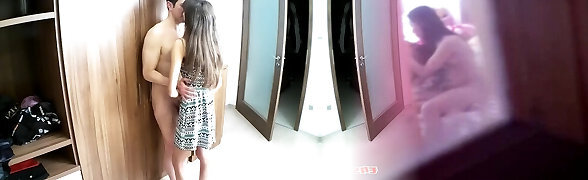 Slutty dark-haired chick Sofia gets hailed in the lingerie shop