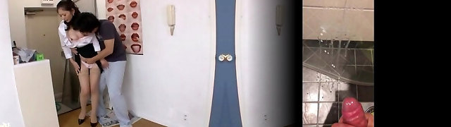 CFNM femdoms wanking off cheeky spycam until cum