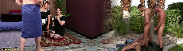 Maids Angelique Luka and Lucia Enjoy sucking off their customer's dong