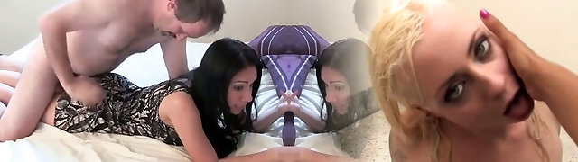 Pegging CFNM dominas fucks sissy in 3way with faux-cock