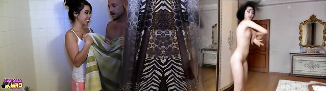 Horny slut takes off her clothes to tease her her nude lover