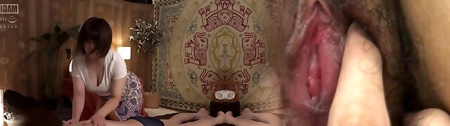 Beautiful Japanese girl places her mind-blowing leg on the guys rock hard pecker