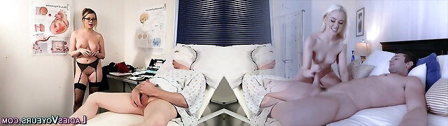 Hidden camera at the physician's office records blonde nurse getting man meat