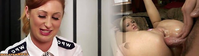 Female british cops tugging sub in his cell