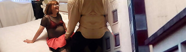 Useless chubby brown-haired wife watched her hubby and crossdresser