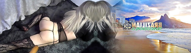 Sexy crossdresser fucked humungous dildo and big black cock