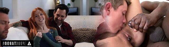 Playful redhead sis properly DPed by two horny bulls in loud trio