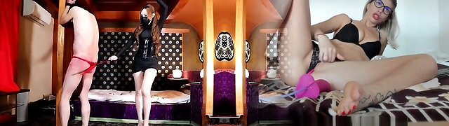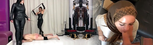 Female Dom fetish mistresses fuck bdsm loser with strapon