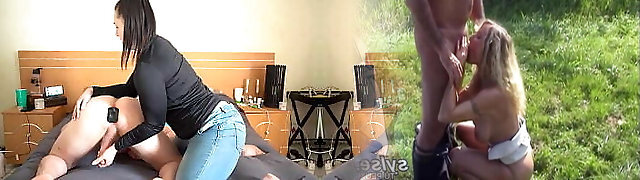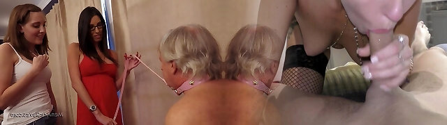 CFNM femdom busty brunettes jerk sausage of his submissive
