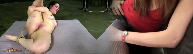 Flexible gymnast Lea Lexis stretched in bondage and jizzed