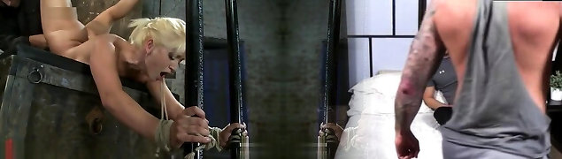 Tied up blond milf London River is drilled and penalized by brutal tattooed guy