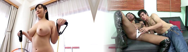 Flexible Asian solo model Hanyuu Arisa loves working out naked