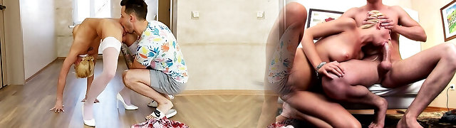 Flexible big breasted blonde bi-atch wifey cheats on hubby with BBC owner