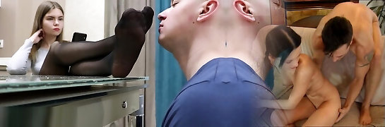 Well-shaped stepsis looks even finer with jizz flow on her feet - POV