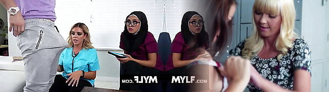 mylf-le docteur milf aux gros seins vivianne desilva et son assistante musulmane bianca bangs soignent une blessure à la bite