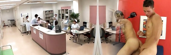 un médecin asiatique laisse tomber ses vêtements pour chevaucher la tige raide d'un patient