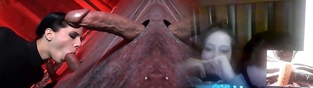 European model sucks 3 cocks at a gloryhole