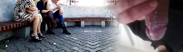 Elder pervert shows his penis in public and allows girl to jerk it