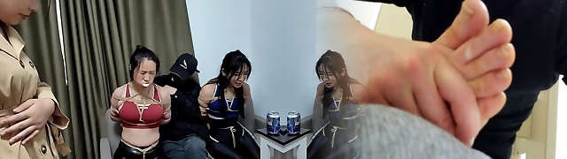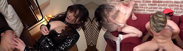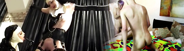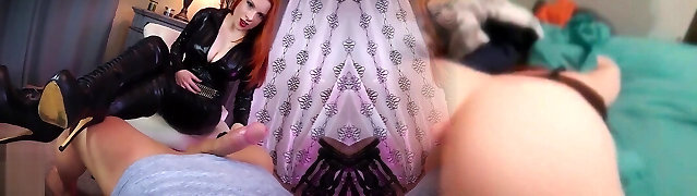 Femdom fetish mistresses fuck bdsm loser with strapon