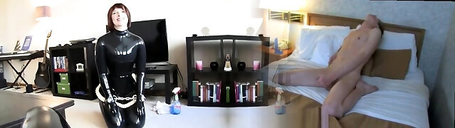 Crazy brunette with a slim figure in a latex bdsm suit gets fucked by her horny boss