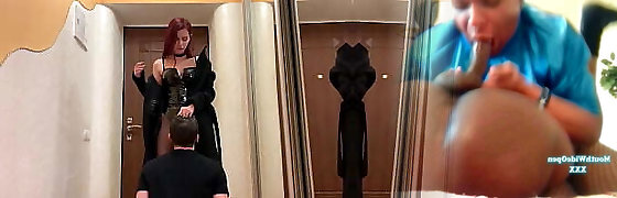 Femdom MILF likes to suck knobs of her submissives and eat their cum