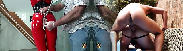 Shyla Stylez in red latex moves her sexy undies for friend's rock-hard dick