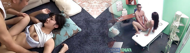 Busty brunette stunner Anri Okita gets talked into banging with a friend