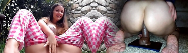beautiful female with a big ass masturbates in a public place Two