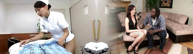 Sexy nurse with a humid slick shaven pussy and tight ass fucking a black man hard