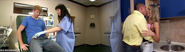 Patient needs to have his nuts emptied and a nurse helps him jizm