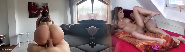Amazing versatile bootyful hottie takes double cock invasion at once