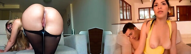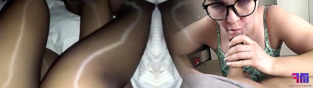 Brunette in Pantyhose Enjoys Deep Doggy and Intense Oral Finish