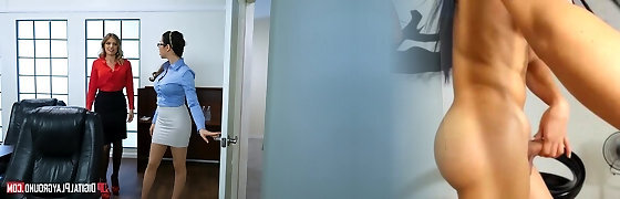 Super-hot Asian Secretary in Pantyhose and High Heels Molested