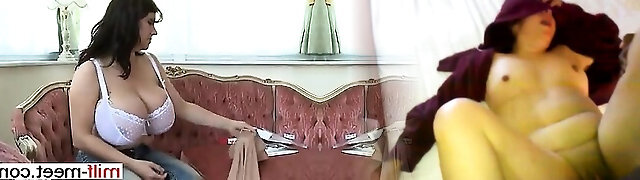 mature brunette craving for hard penis deep inside her pussy on the couch
