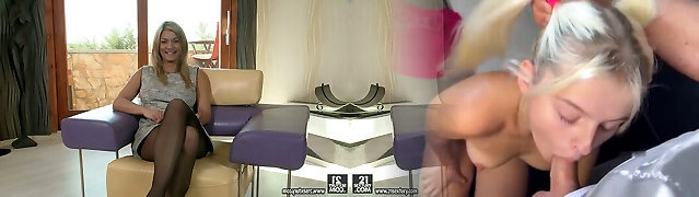 Experienced milf is licking snatch and sucking nipples of small blonde Elsa Jean
