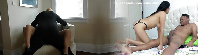 Wife is teasing husband with leotard and shiny pantyhose