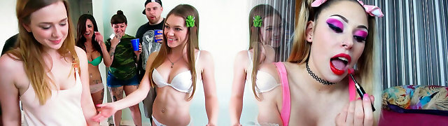 CFNM party with dick sucking by insatiable models. Angelina Elise