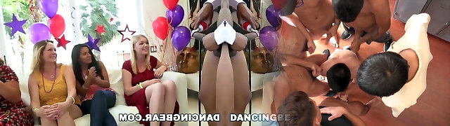 Lot of horny girls enjoy having naughty lezzy fun during a birthday