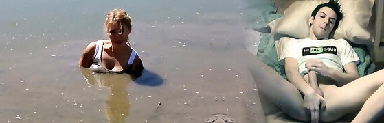 Hot big tits towheaded milf Lisi Kitty swimming naked
