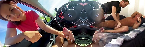 Steamy brunette with huge boobs sucks my trouser snake and gives her cunt [Pov]