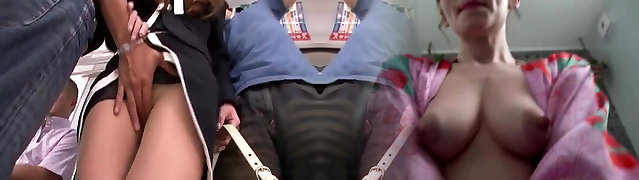 Slutty Asian chick Mami Asakura is fucked by a few strangers in the subway car